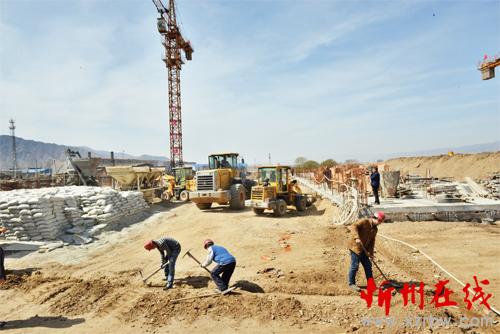 3 月29 日上午,繁峙縣舉辦了項目攻堅百日行動集中開工活動,14 個項目同時開工,項目總投資達21.044 億元。圖為繁峙縣化肥廠棚戶區(qū)改造和公共租賃房屋建設(shè)項目施工現(xiàn)場。(喬偉 李曉軍 攝)