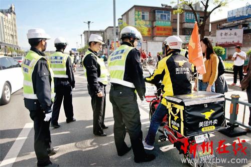 4 月18 日,市公安局交警支隊(duì)組織直屬大隊(duì)民警在城區(qū)主要街道進(jìn)行電動(dòng)車(chē)交通違法整治,并勸導(dǎo)騎電動(dòng)車(chē)的市民在出行時(shí),切記安全,各行其道,遵守交通規(guī)則。圖為查處現(xiàn)場(chǎng)。(張軍 攝影報(bào)道)