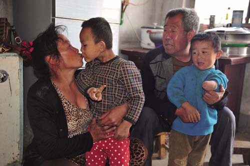 原來,張滿亮的妻子在附近的礦山企業(yè)打工當(dāng)廚師,在回家的途中遇到一個被父母遺棄路邊的殘疾棄嬰,在那里哇哇大哭,她左思右想不忍心,就將殘疾棄嬰抱回家撫養(yǎng),丈夫張滿亮不僅不嫌棄,還搭手幫忙。從此開始,得知張滿亮夫婦是樂做善事熱心人的縣民政局和周邊村民,就接連不斷地將殘疾棄嬰給張滿亮夫婦送來,他倆二話不說全部接納收養(yǎng),6年來一共接納了9名。隨著殘疾兒童的增多,自家房屋缺少沒法養(yǎng),村集體就將舊學(xué)校的幾間房屋騰出來讓他倆占用?,F(xiàn)在9名棄嬰,最大的五六歲,最小的才五個月,均有殘疾,有的兔嘴、缺耳、缺胳膊、雙目失明,有的患肌肉萎縮、肺腫大、心臟病、疝氣。張滿亮夫婦以父母般的愛心撫養(yǎng)照料這些孩子,還給起了很好聽的名字:張?zhí)炖?、張?zhí)煊?、張?zhí)祜L(fēng)、張?zhí)煸?、張?zhí)觳?、張?zhí)鞂?、張?zhí)旎ā堺惢?、張彩花。他倆與二兒媳董艷紅精心照料著殘疾兒童的一日三餐和生活起居,穿衣喂飯,潑奶哺乳,擦屎倒尿,大哭小叫,不厭不煩,起早貪黑,周而復(fù)始,以人間大愛撫育著這些殘疾兒童健康的成長。
