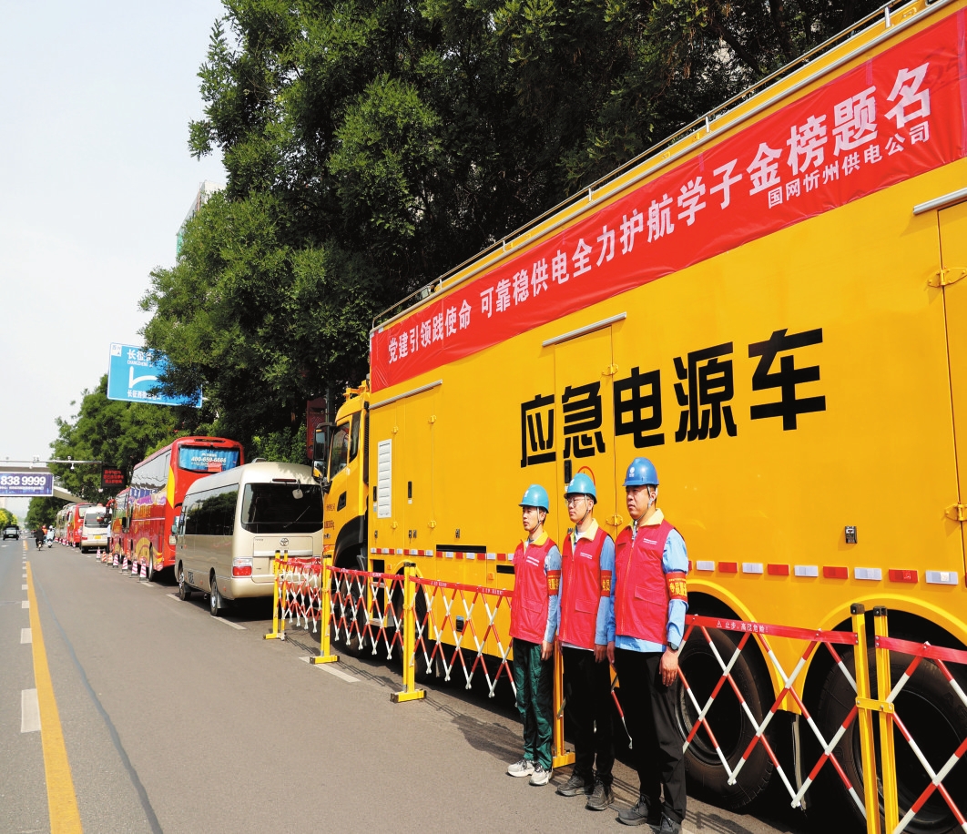 圖為忻州六中考點(diǎn),國(guó)網(wǎng)忻州供電公司應(yīng)急電源車(chē)隨時(shí)待命。宮清華攝