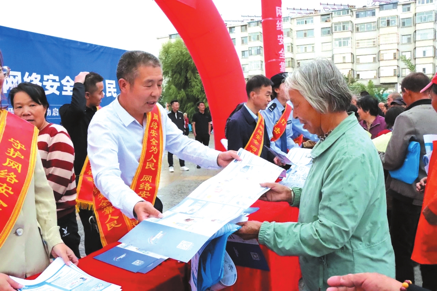 圖為工作人員正在發(fā)放網絡安全宣傳資料。