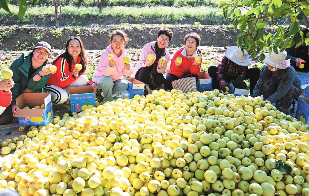 定襄縣北社東村、北社西村一帶盛產(chǎn)酥梨。由于交通便利,金秋十月吸引了眾多觀光客前來采摘。田間地頭,梨樹之下,一派豐收景象。(張晉蘭 攝