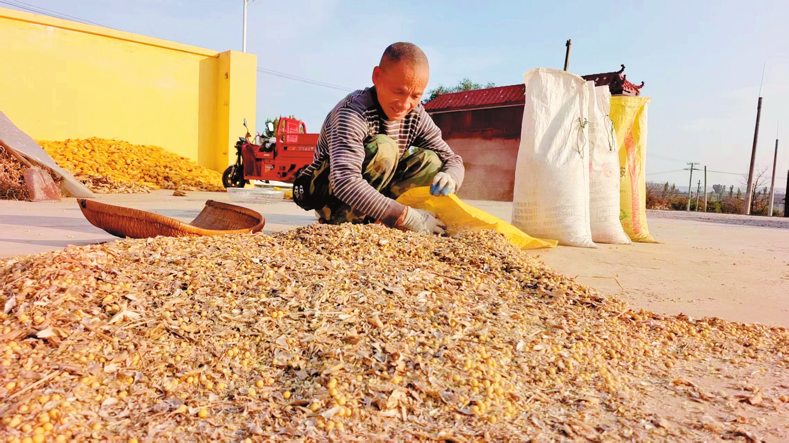 近日,河曲縣唐家會村的村民們正晾曬收獲的黃豆,確保顆粒歸倉。(
