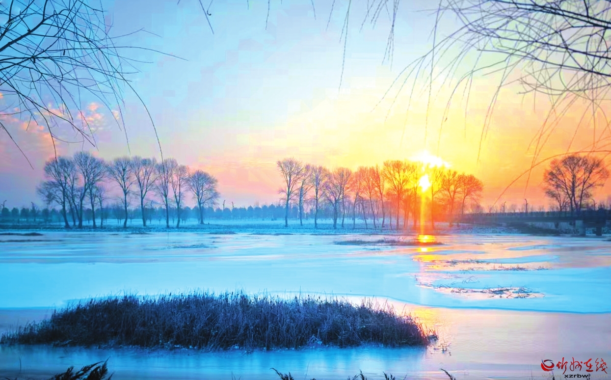 牧馬河公園的雪,則是城市里的小確幸。柳樹的枝條裹著雪,像銀條般垂落。湖面結(jié)著薄冰,倒映著岸邊的雪樹,一派祥和景象。老人們在雪后的小徑上散步,孩子們追跑打鬧,堆起憨態(tài)可掬的雪人,偶爾傳來的歡笑聲,讓整個公園都充滿了生機。