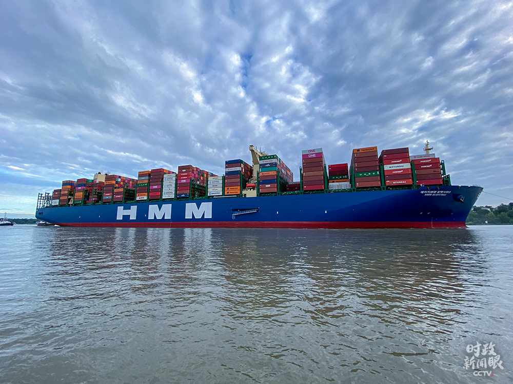 △6月7日,全球最大集裝箱船“HMM阿爾赫西拉斯”號(hào)首次抵達(dá)德國漢堡港。