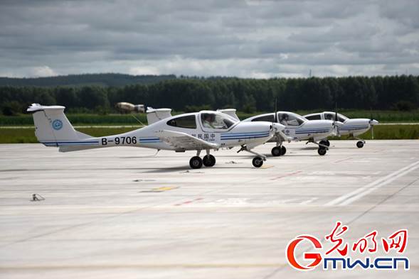 光明網(wǎng)訊(記者 趙艷艷 潘迪 李剛)“嘟嘟嘟……”在內(nèi)蒙古自治區(qū)扎蘭屯成吉思汗機(jī)場(chǎng)的跑道上,一架架訓(xùn)練機(jī)整齊劃一,蓄勢(shì)待發(fā)。沒幾分鐘,隨著飛行學(xué)員們熟練的操作,訓(xùn)練機(jī)機(jī)群直上云霄,在成吉思汗機(jī)場(chǎng)上空畫出一道道美麗的弧線。這些年輕的飛行學(xué)員們,來自中國(guó)民航大學(xué)內(nèi)蒙古飛行學(xué)院。