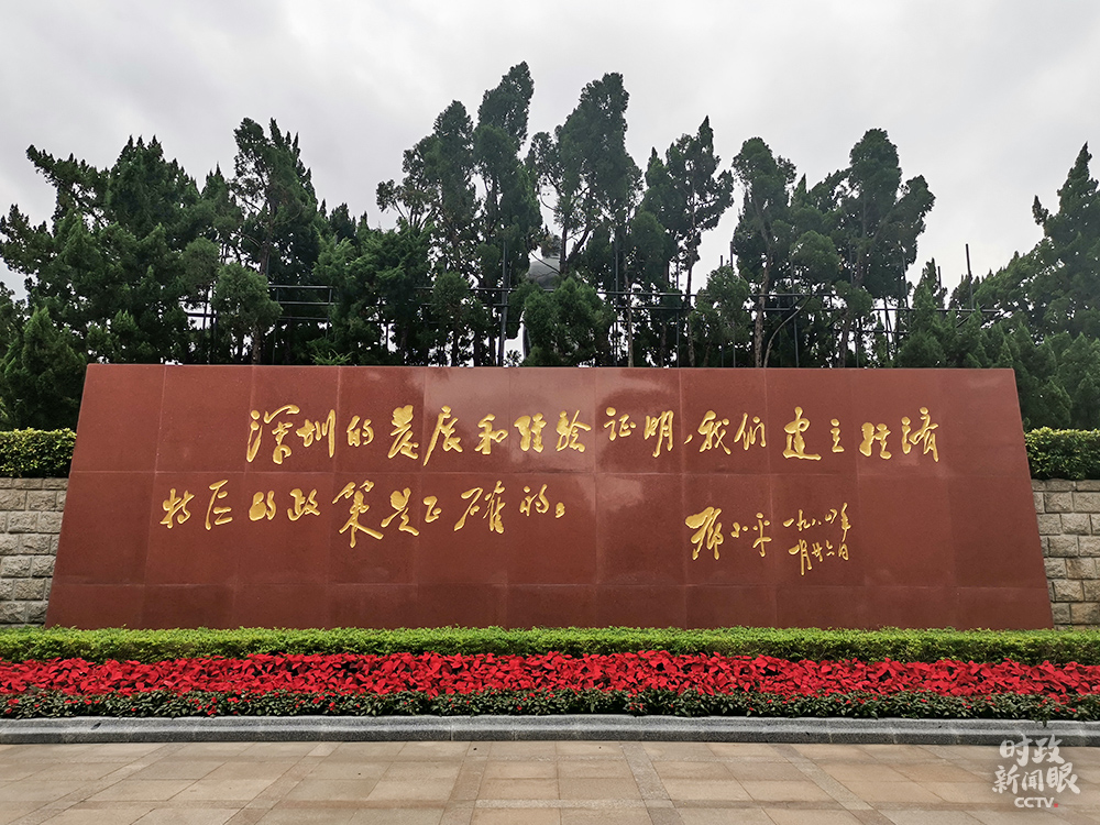 △鄧小平銅像北側(cè)是一塊長達(dá)13米、高4.35米的花崗巖石墻,石墻北面鐫刻著鄧小平同志1984年視察深圳時(shí)的題詞:“深圳的發(fā)展和經(jīng)驗(yàn)證明,我們建立經(jīng)濟(jì)特區(qū)的政策是正確的。”(總臺(tái)央視記者王冰拍攝)
