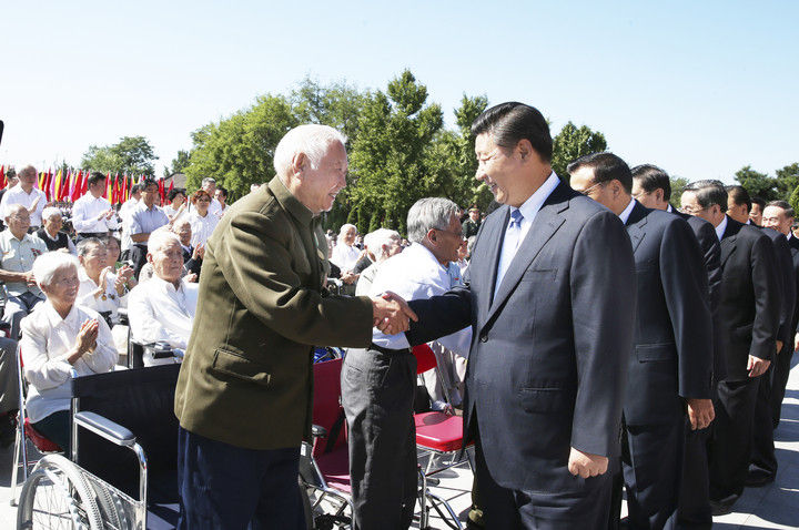 2014年9月3日上午,習(xí)近平與抗戰(zhàn)老戰(zhàn)士和老同志、抗戰(zhàn)烈士親屬、為抗戰(zhàn)勝利作出貢獻(xiàn)的國際友人遺屬代表親切會面。