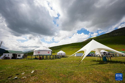 這是6月30日在阿禾公路旁拍攝的由當?shù)卮迕窠?jīng)營的餐飲氈房。(新華社記者 徐宏巖 攝)