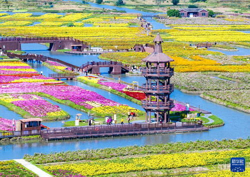 10月23日,游客在江蘇省興化市千垛景區(qū)賞菊游玩(無(wú)人機(jī)照片)。(新華社發(fā) 周社根 攝)