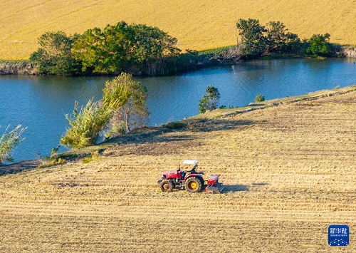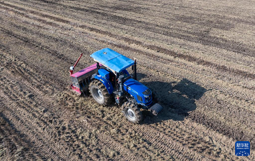 11月19日,在江蘇省常州市金壇區(qū)金城鎮(zhèn),農(nóng)機在田里播種小麥。(新華社發(fā) 陳暐 攝)