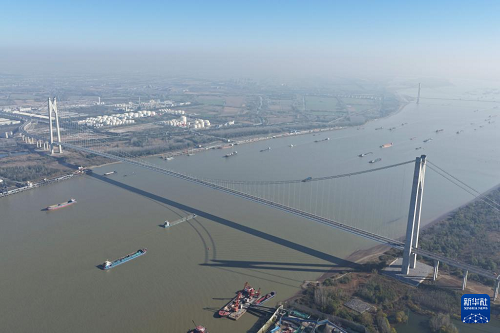 11月26日拍攝的南京新生圩長(zhǎng)江大橋(無(wú)人機(jī)照片)。(新華社記者 毛俊 攝)