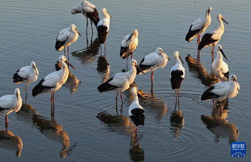 近日,大批東方白鸛飛抵河北省唐山市豐南區(qū)沿海濕地覓食、停留,形成一道靚麗的風(fēng)景。