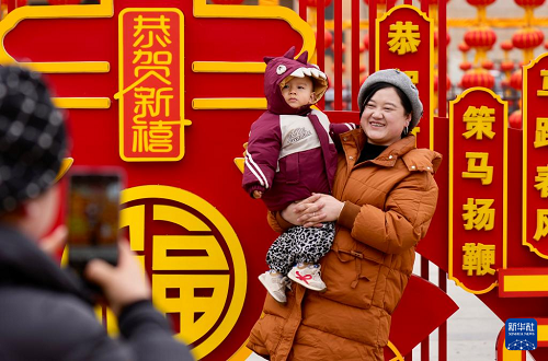 2月3日,游客在寧夏固原市西吉縣年貨大集現(xiàn)場留影。(新華社記者 楊植森 攝)