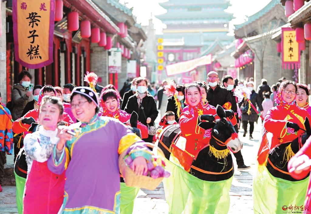 2月17日,忻州古城,民間文藝表演隊正在街頭巡演。春節(jié)期間,忻州古城舉辦“逛古城、品文化、識忻州”旅游文化活動,雄獅起舞、八音吹奏、秧歌表演等一系列富有當地特色的民間文藝活動精彩紛呈,吸引了眾多旅游者游覽觀賞,整個古城呈現出一派喜慶祥和的節(jié)日氣氛。 (李兆民 攝)