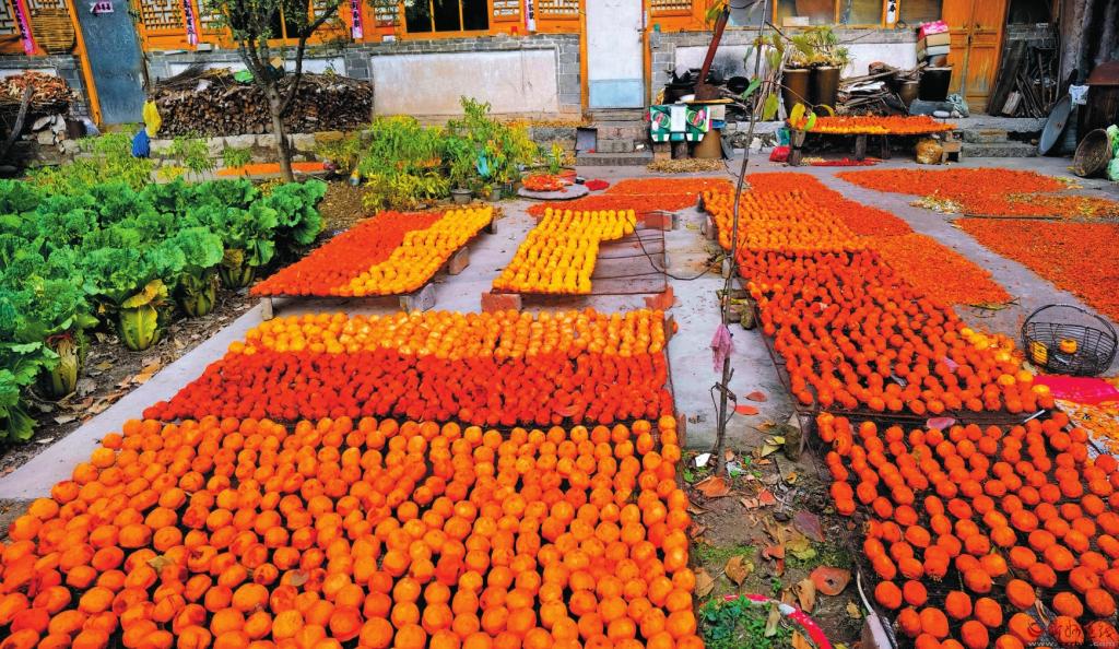 這個(gè)季節(jié),東峪便成為網(wǎng)紅打卡地,吸引了遠(yuǎn)近無數(shù)的游人。這樣的美景,最宜天晴時(shí)靜賞,紅柿,藍(lán)天,冷暖相宜,濃淡有致,組成了一幅絕美的秋韻圖。這個(gè)季節(jié),也是農(nóng)戶的豐收季,一家人都出動,把柿子摘下,在院子里晾曬,滿院子甘甜美味,是煙火人間里最真切的幸福,心里也會生出喜悅和希望。(本報(bào)記者 聶艷英)