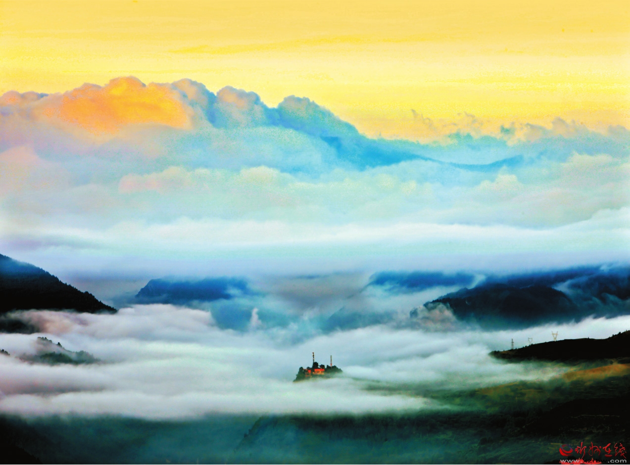 站在高山之巔,徐徐浮動(dòng)、漫無邊際的云遙掛在山水間,柔潤似水、渾然天成,變幻莫測、瑰麗壯觀。
