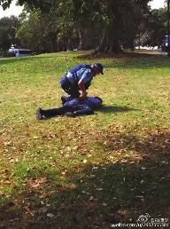 一名目擊導(dǎo)游說:“剛才有兩個客人在悉尼草坪上方便,讓警察看見了。警察追他們,他們提著褲子跑。他們惱羞成怒,要打警察。警察一個過肩摔,把一個男的摔地上骨折了。現(xiàn)在救護車,警車都過來了?!?/p>