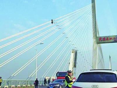 據(jù)武漢晚報13日報道,12日下午1點半,一名六旬男子爬上湖北武漢長江二橋斜拉索,離橋面約30米,聲稱要跳橋。民警、消防趕到現(xiàn)場救援,僵持一個小時后,消防出動云梯施救,方才將輕生男子救下接回橋面。這起事故導(dǎo)致二橋和漢口、武昌多處道路交通擁堵近3個小時,直至昨天下午5點,交通才恢復(fù)正常。