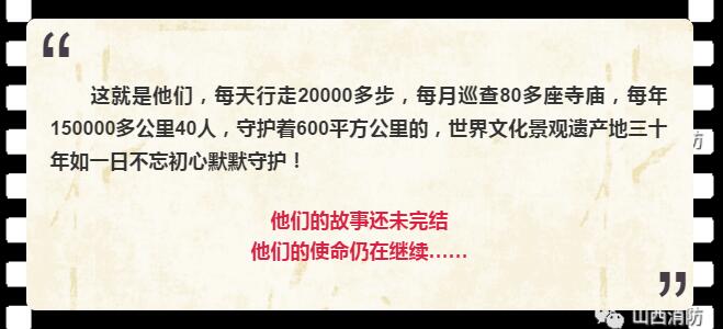 內(nèi)容簡(jiǎn)介:該片以守護(hù)為主題,以傳承為主線,以現(xiàn)任山西忻州五臺(tái)山消防大隊(duì)工程師劉川為第一人稱視角,利用紀(jì)實(shí)跟拍的手法,通過對(duì)以劉川為代表的五臺(tái)山消防大隊(duì)官兵在消防監(jiān)督檢查、消防執(zhí)勤保衛(wèi)、日常工作生活等方面點(diǎn)點(diǎn)滴滴的真實(shí)紀(jì)錄,向觀眾展示了五臺(tái)山消防官兵在長期默默守護(hù)五臺(tái)山600平方公里的世界文化景觀遺產(chǎn)地和數(shù)十座文物古建筑消防安全中的辛勤付出和無私奉獻(xiàn),也讓觀眾了解了30多年來深深根植于每一代五臺(tái)山消防人心中的那份不忘初心、不畏艱辛、舍己奉公、代代傳承的五臺(tái)山消防精神。