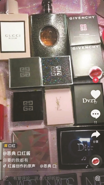 在另一個短視頻平臺上,一位主播展示了自己制作的各品牌口紅,有幾十只之多,都是知名的化妝品品牌。