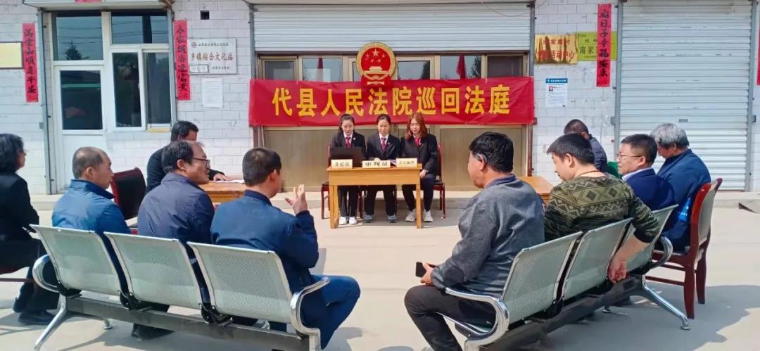 “現(xiàn)在開(kāi)庭!”代縣磨坊鄉(xiāng)南家寨村村委會(huì)前,巡回法庭正在庭審,通過(guò)調(diào)解解決矛盾糾紛的同時(shí),還給群眾上了一堂生動(dòng)的法治教育公開(kāi)課。