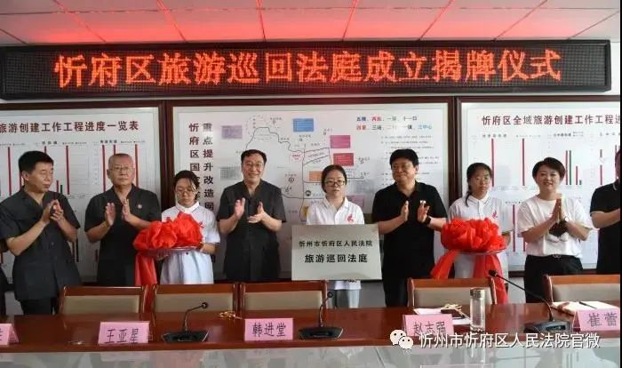 為推動(dòng)忻府區(qū)國家全域旅游示范區(qū)建設(shè),規(guī)范忻府區(qū)旅游糾紛及時(shí)化解,為忻府區(qū)旅游業(yè)健康發(fā)展提供良好的法治環(huán)境和長效司法保障,促進(jìn)旅游經(jīng)濟(jì)持續(xù)發(fā)展,助力旅游產(chǎn)業(yè)提檔升級(jí),7月20日,忻府區(qū)法院旅游巡回法庭在忻府區(qū)文化和旅游局正式掛牌成立。