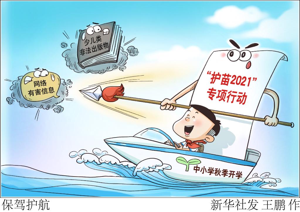 新華社北京9月6日電(記者史競男、王鵬)按照全國“掃黃打非”辦公室部署安排,各地“掃黃打非”部門近期深入開展“護(hù)苗2021”專項(xiàng)行動(dòng),在專項(xiàng)整治暑期文化市場基礎(chǔ)上,積極開展“護(hù)苗·開學(xué)季”活動(dòng),為中小學(xué)秋季開學(xué)保駕護(hù)航。