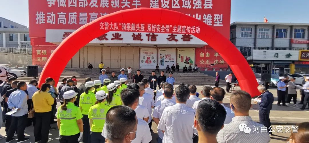 為進(jìn)一步提升摩托車(chē)、電動(dòng)自行車(chē)騎乘人員和機(jī)動(dòng)車(chē)駕乘人員安全防護(hù)意識(shí),降低交通事故死亡風(fēng)險(xiǎn),保護(hù)人民群眾生命財(cái)產(chǎn)安全,9月8日上午,河曲縣公安局交警大隊(duì)在政府門(mén)前廣場(chǎng)開(kāi)展了“騎乘戴頭盔 系好安全帶”主題宣傳活動(dòng)??h政府副縣長(zhǎng)、公安局局長(zhǎng)杜煒出席并作講話(huà),大隊(duì)長(zhǎng)于建杰、教導(dǎo)員李喜峰參加了活動(dòng),活動(dòng)由政府辦副主任竇明軒主持,大隊(duì)部分民輔警以及公交、出租駕駛員共計(jì)50余人參加。