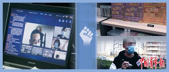 左:北京市東城區(qū)人民法院線上開(kāi)庭審理一起販賣(mài)合成大麻素類(lèi)(“上頭”電子煙)毒品案。 北京市東城區(qū)人民法院供圖