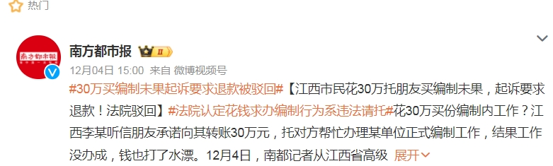 #30萬(wàn)買編制未果起訴要求退款被駁回#