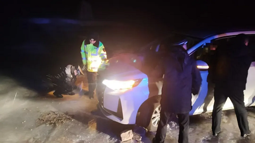 2025年2月17日22時(shí)許,繁峙縣公安局神堂堡派出所接到110指令稱,廣西籍游客張某開車行至神堂堡蓮花崖大峽谷路段時(shí),車輛不慎滑到路邊一處冰面斜坡路段,情況危急,請(qǐng)求救援。
