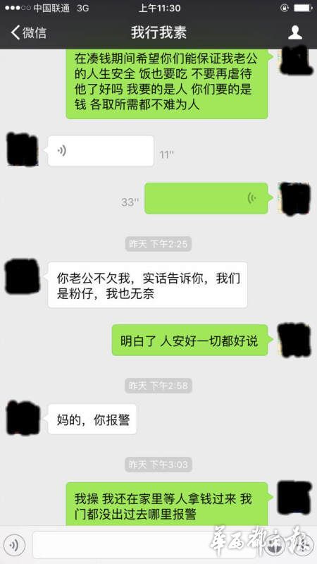 趙婷用微信與丈夫聯(lián)系,回復(fù)的人卻變成了“綁匪”,索要6萬(wàn)元的贖金,否則撕票。趙婷說(shuō),一定會(huì)湊錢(qián),但要保證王江的人生安全,不能虐待,各取所需都不為難人,“綁匪”卻一直逼問(wèn)著錢(qián)的下落,并煞有其事地強(qiáng)調(diào)“不要報(bào)警”。