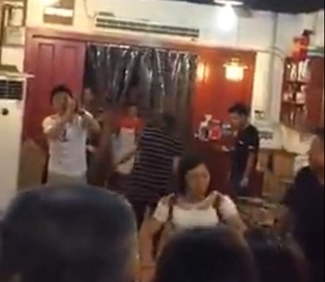 圖為便衣民警在向餐館內(nèi)群眾道歉(左一)。