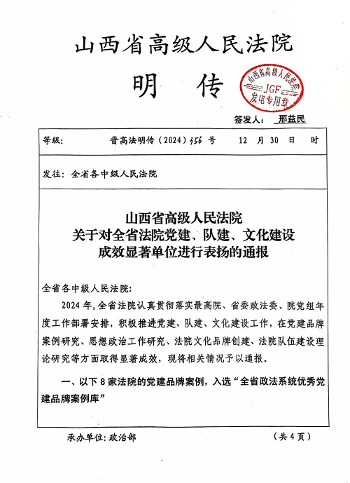 積極利用忻州優(yōu)質(zhì)紅色資源,注入法院文化,作為堅定理想信念、加強黨性修養(yǎng)的生動教材,組織黨員干警到西柏坡紀念館、省黨風廉政教育基地、徐向前故居等地接受革命傳統(tǒng)教育,以參觀主題展館、聆聽紅色故事、重溫入黨誓詞、講授紅色黨課等方式開展紅色教育實踐活動,在實物、實景、實事中注入強大的精神動力。打造特色文化陣地,建成黨建、家事、傳統(tǒng)三個主題文化長廊,引導干警學黨史、知黨情、感黨恩、跟黨走。依托“兩微一網(wǎng)”、抖音、快手等新媒體平臺,積極開展法院文化宣傳,拍攝制作的8部法治微電影、微視頻先后榮獲5個國家級和15個省級表彰獎項,中院天平號被最高院評為“十佳天平號”“百佳新媒體”。忻州中院被指定為“忻州市青少年法治教育基地”,被省委宣傳部、省司法廳評為“省級法治宣傳教育基地”,被省社科聯(lián)命名為“山西省社會科學普及宣傳基地”。用心用情、精準精細做好老干部工作,念好“居、學、榮、依、樂、為”六字訣,《黨建引領“夕陽紅”,夕陽點亮“黨建紅”》典型經(jīng)驗在全市老干部工作會議上作了交流。