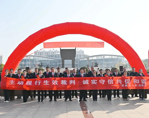 為切實將勝訴當事人的“紙上權(quán)益”轉(zhuǎn)化為“真金白銀”,有效敦促被執(zhí)行人主動履行法律義務(wù),積極營造“守信光榮、失信可恥”的良好社會氛圍,10月29日,定襄法院在金鼎廣場舉行“執(zhí)行宣傳周”啟動儀式。定襄法院黨組書記、院長張曉峰出席啟動儀式,執(zhí)行局全體干警及相關(guān)部門負責(zé)同志參加活動。