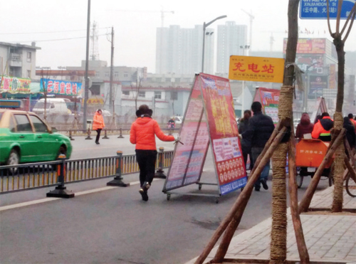 占用非機(jī)動車道進(jìn)行廣告宣傳(王國棟 攝)
