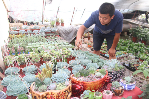 7月6日,原平市柳巷村福地花圃的花農(nóng)正在細(xì)心管理自己種植的多肉植物。近年來,該市不斷調(diào)整種植結(jié)構(gòu),引導(dǎo)農(nóng)戶發(fā)展多肉植物等花卉產(chǎn)業(yè),有效地促進(jìn)了農(nóng)民增收致富。(褚震 攝)