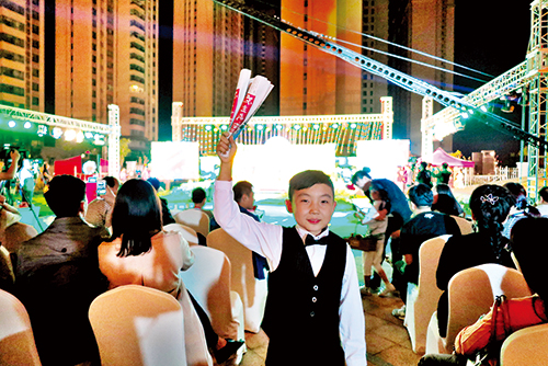 月光皎潔,清輝遍灑,這夜雖是農(nóng)歷八月十三,月亮卻已迫不及待地圓了起來?;ê迷聢A、春花秋月、花前月下……月宮是神話中的仙境,而此時泛華酒店的后花園里也如仙境一般,琴、詩、書法共同演繹《春江花月夜》,讓現(xiàn)場的500余名觀眾如癡如醉。面容清秀、刺繡大紅旗袍在身的琴師端坐在舞臺的左側,雙手拂動,琴聲綿綿,舒心悅耳;鋪紙、執(zhí)筆、蘸墨、揮毫,舞臺中央的呂峰仿佛置身自家書房之中,墨香中三幅書法作品轉瞬完成;“醉眼看世界,朦朧看人生……李白醉了,醉了!”舞臺右側的朗誦者孫美琴將李白的一生揉碎在他的詩中,就著朦朧的月色,用獨特的聲線摻在她的情感中,沉醉了自己,也迷醉了觀眾。