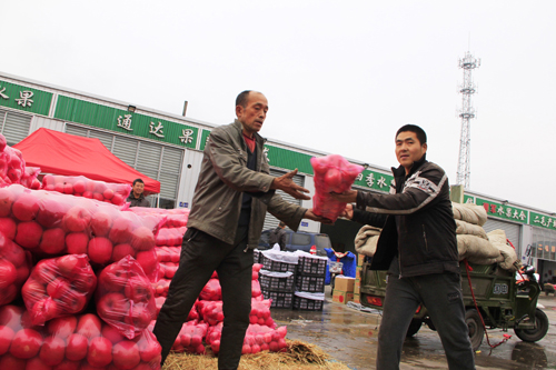 10月23日,原平市果農(nóng)正在德金城農(nóng)產(chǎn)品交易市場(chǎng)卸貨,進(jìn)行銷(xiāo)售。原平市著力打通農(nóng)產(chǎn)品銷(xiāo)售渠道,通過(guò)創(chuàng)建市場(chǎng)、加強(qiáng)管理,將當(dāng)?shù)剞r(nóng)產(chǎn)品規(guī)范到統(tǒng)一銷(xiāo)售場(chǎng)所,抱團(tuán)銷(xiāo)售農(nóng)產(chǎn)品,不僅方便了消費(fèi)者,而且便于走出去,打造知名品牌。(吉建平 攝)