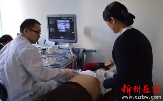 醫(yī)務(wù)人員正在為退休環(huán)衛(wèi)工人B超。