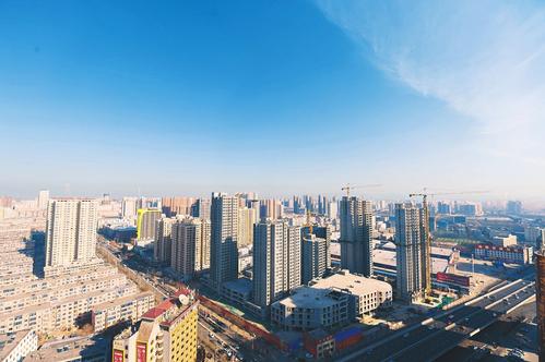 1月9日,太原市空氣AQI指數(shù)81,市民迎來了一個干凈透亮的二級天。圖為蔚藍(lán)天空下省城南內(nèi)環(huán)西街附近景色。(本報記者 阮洋 攝)