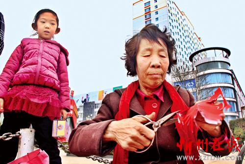 今年76歲的楊秋香老人是原平的一名退休職工,她從小對剪紙藝術(shù)情有獨鐘,退休后辦起了剪紙學(xué)習(xí)班,在她的倡導(dǎo)下,十多名婦女不僅學(xué)習(xí)剪紙技藝,還上了原平市老年大學(xué),共同學(xué)習(xí),提高技藝,弘揚和傳承剪紙非物質(zhì)文化遺產(chǎn)。圖為3月19日,楊秋香正在原平街心廣場現(xiàn)場剪紙,向市民們展示剪紙才藝 吉建平 攝