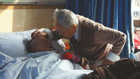“廖大爺‘肉麻’得很哦,他天天要給鐘婆婆說,你是我的小寶貝,你要快點(diǎn)好起來,我愛你?!贝蠹叶颊f,很少見老年人這么說“肉麻”的話,可在鐘婆婆住院的這段時(shí)間里,廖思源每天都要說給她聽。