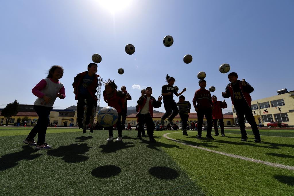 ↑這是學(xué)生們在球場上訓(xùn)練(4月16日攝)。新華社記者詹彥攝