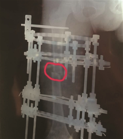 牽引架將斷骨處拉開,3個(gè)月增加近8厘米。