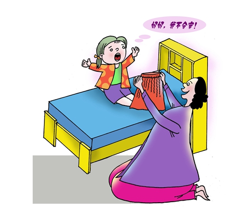 對于孩子不會做的事情,大人要教給他正確的方法,可以通過游戲的形式讓他完成,如將穿衣的方法編成一首兒歌,“抓領(lǐng)子,蓋房子,小老鼠,出洞子,吱溜吱溜上房子?!弊尯⒆釉诶世噬峡诘膬焊柚袑W(xué)會穿衣,以此調(diào)動他動手的興趣,更好地體驗成功的快樂!