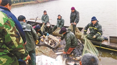 今年年初,武漢科技大學(xué)在校內(nèi)的人工湖沁湖里投放了約一萬斤的魚苗,12月21日,學(xué)校組織人員將湖內(nèi)的魚捕撈上岸。武漢科技大學(xué)后勤集團(tuán)的一位負(fù)責(zé)人對(duì)北京青年報(bào)記者表示,此次共捕撈出兩萬四千多斤的魚,品種為白鰱、草魚等,這些魚已被送至學(xué)校的食堂,供萬名在校師生免費(fèi)食用。