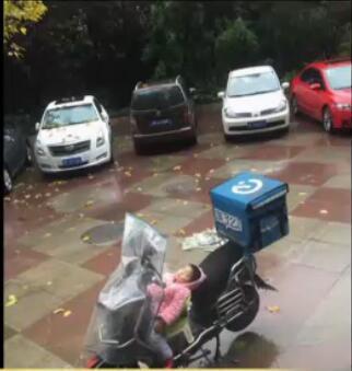 東方網(wǎng)12月30日消息:前兩天上海又是下雨又是降溫,有網(wǎng)友就拍到了這樣一張照片,讓很多人看到了心里很不是滋味。大屏幕上的這張照片當(dāng)中我們能看到有一名3歲的小女孩仰面躺在一輛送外賣的電動(dòng)車上,也許是累了,即便是下著雨也是睡得很香甜。她為什么會獨(dú)自一人睡在外賣車上,她的父母又在哪里呢。