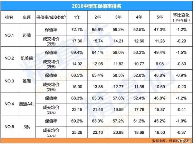 三、中型車保值率分析
